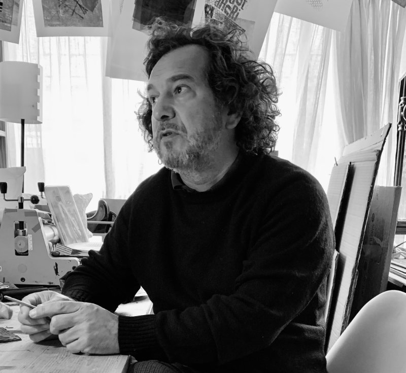 Thierry Page explore gravure, dessin, peinture et sculpture en touche-à-tout insatiable. Il détourne, recycle, contre-emploie, ré-interprète à l’infini. Membres des AAB (Ateliers d’Artistes de Belleville), il co-organise les événements Nuit Blanche et Portes Ouvertes.